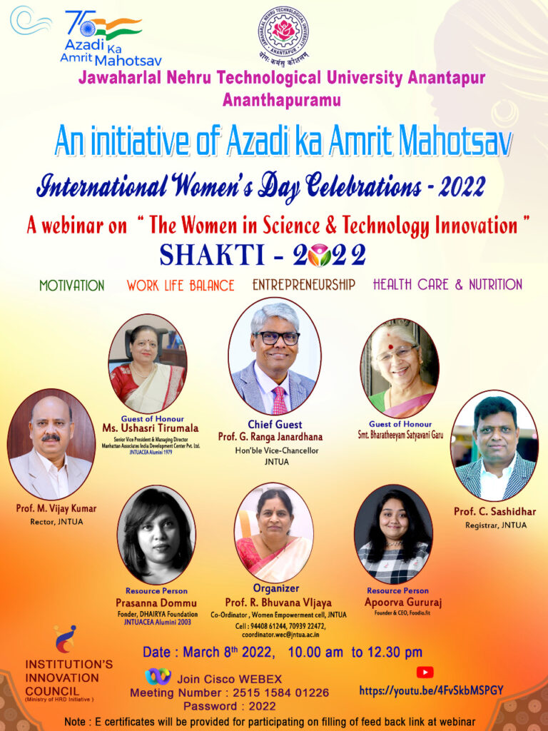 A Webinar on “The Women in Science & Technology Innovation” Shakti-2022 (March 08th 2022)